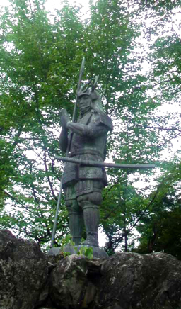 日に焼けた肌と、太くはね上がった眉先、精悍な髭を持ち、眼を見開いた姿で描かれる。