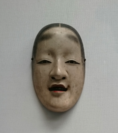 *増女 : 田楽の名人、増阿弥によって創作された面。成熟した女性の面で、天女など神性の強い役に使用される。毛描きは、額中央から横へ二本、こめかみに三本、こめかみから頬へ三本の三段に引かれる。