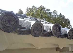 作中では、屋根や壁に木が使われている城、漆喰・瓦が使われている城の両方が存在する。また、城郭建築に、漆喰・瓦が使われだした理由として、耐火性に優れていることや、見た目が優美であること等が挙げられる。